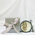 Packaged in a beautiful silver gift box tied with silver satin ribbon and bow.